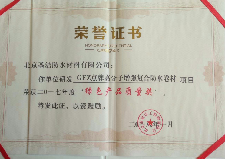 • “2017年度建筑防水行業科學技術獎-工