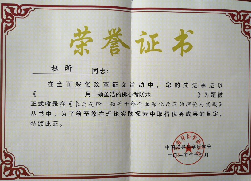 • 杜昕“深圳防水十佳企業家”榮譽證書