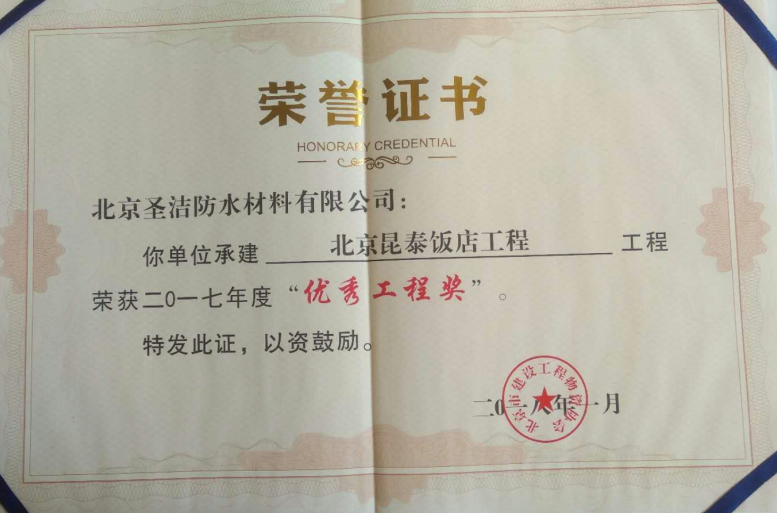 • 河南省優質建筑防水工程獎