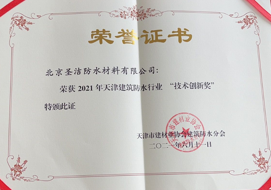 • “2020年度建筑防水行業科學技術獎——